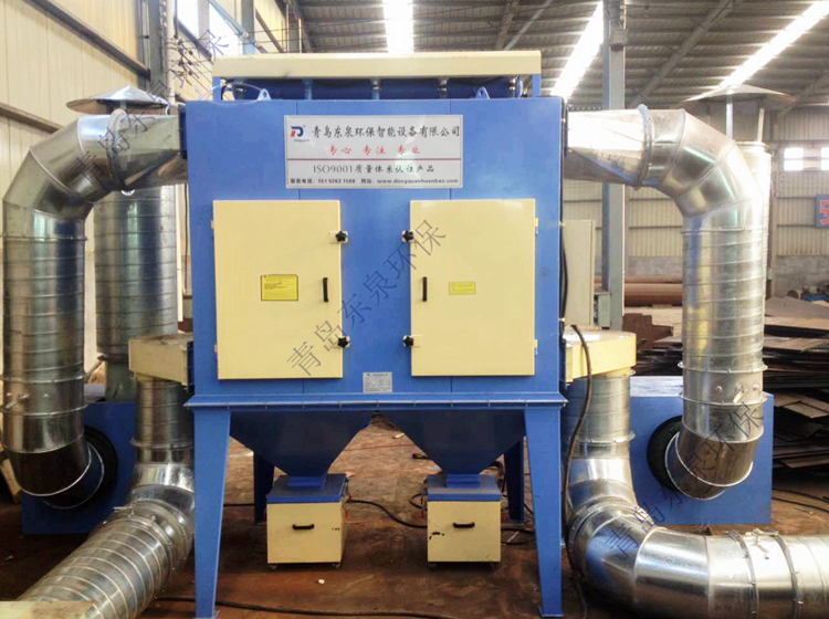 等離子切割除塵設(shè)備簡介 根據(jù)切割機規(guī)格尺寸,確保除塵效果的前提下,本著最經(jīng)濟、維護方便,運行經(jīng)濟,后續(xù)費用小的要求。 干式雙吸式除塵系統(tǒng),即在切割平臺的兩側(cè)放置兩根滑動吸風道,吸風口放在滑動風道這個過程中的吸風道由平臺隔柵與隔柵之間的間距形成。隔柵以下部分為干式隔板,需定期清理里面的切割粉渣。 該種除塵方式屬于兩級過濾,切割產(chǎn)生的煙塵先經(jīng)過一個PA4火花捕捉器擋掉火星和濾除大的顆粒,然后再經(jīng)過濾筒式高效煙塵凈化器過濾掉細小的對人體危害比較大的微塵。需要注意的是由于火焰切割機產(chǎn)生的煙塵與等離子切割機煙塵相似煙塵量相當,但是由于切割精度差異產(chǎn)生的廢料較多,因此吸風格柵需要做成寬度250mm一個,3個一組。具體圖紙合同簽訂后青島東泉提供。